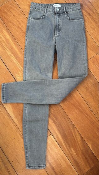 Pantalones ajustados de Zara en color gris. - Corte skinny. - Tiro alto.