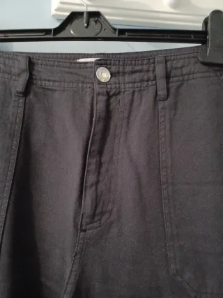 Pantalón culotte de Zara en color negro. Diseño moderno y versátil. - Corte ancho. - Cintura alta. - Bolsillos laterales. Está perfecto salvo por una pequeña mancha que se aprecia en la foto.
