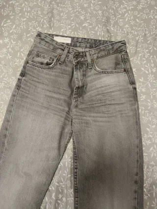 Pantalón Denim de Zara con un llamativo acabado plateado y diseño de pata ancha. -talla 34 - Corte recto. - Cintura alta. - Bolsillos delanteros y traseros. - sin estrenar , con etiqueta se recogen en domicilio , no hago envíos