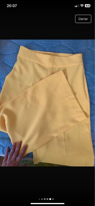 Pantalón de vestir de la marca Zara, con un vibrante color amarillo y un diseño clásico de pinzas. Ideal para añadir un toque de color a tu vestuario. - Diseño de pinzas. - Cierre de botón y cremallera. - Bolsillos delanteros y traseros.