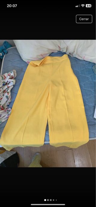 Pantalones de corte ancho de Zara. - Talla S. - Color amarillo. - Diseño arreglado.