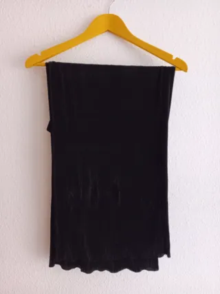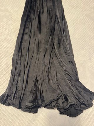 Pantalón ancho de Zara con un diseño fluido y moderno. La tela tiene un acabado satinado y un efecto plisado que le da mucho movimiento. - Cintura cierre cremallera. - Piernas anchas y fluidas. - Detalle de pliegues verticales.