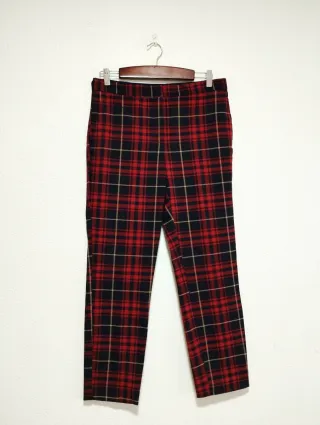 Pantalón de cuadros de Zara con un diseño clásico. - Patrón de cuadros en tonos azul marino, rojo y beige. - Corte recto. - Cintura con trabillas.