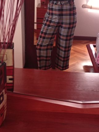 Pantalón Zara talla 36, con cremallera y broches. tiene bolsillos pero están sin descoser. estampado de cuadros, con el bajo hacia adentro. son tobilleros. Medida cintura atada: 33 cm
