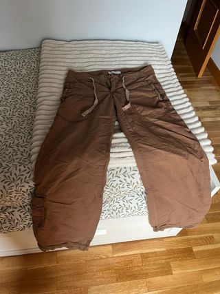 Pantalones cargo de Zara en color marrón. Tienen un diseño cómodo y moderno. - Cintura con cordón ajustable. - Bolsillos cargo laterales. - Bajo de pierna con elástico.