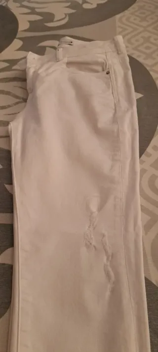 Pantalón de la marca Zara en color blanco,tiene zonas como desgastadas de adorno,Talla 40.Usado 2 veces