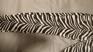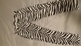 Pantalón con un llamativo estampado de cebra. Tiro bajo. Medidas en las fotos - Diseño de cebra en blanco y negro.