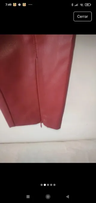Pantalón de polipiel con un llamativo color granate. Es amplio, da para más talla - Diseño ajustado. - Cremallera en el bajo.
