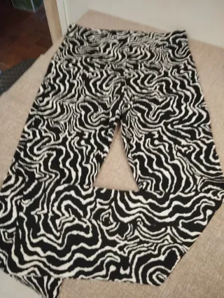 Pantalones de Zara con un llamativo estampado geométrico. - Diseño con cintura elástica. - Dos botones decorativos en la parte delantera.