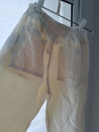 Pantalón de Zara en color beige, con un diseño cómodo y moderno. - Cintura elástica con cordón. - Bolsillos laterales. - Tejido ligero.