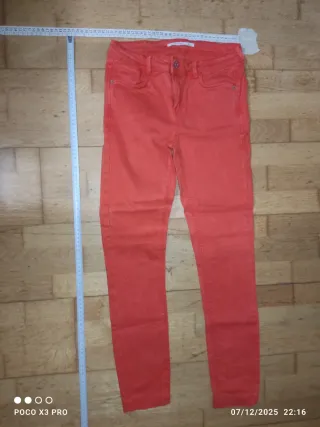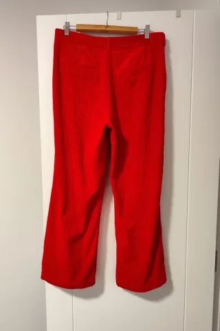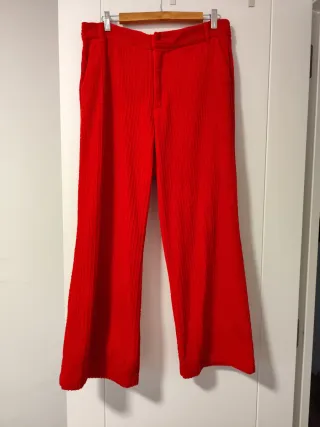 Pantalón rojo de pana de Zara, talla L amplia, medidas en las fotos. Ancho, cómodo y ligero, sienta de maravilla, el color es rojo rojo, precioso. Casi sin uso, como nuevo
