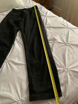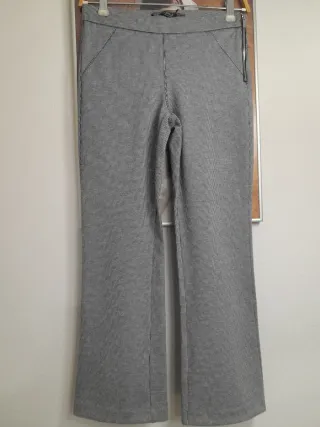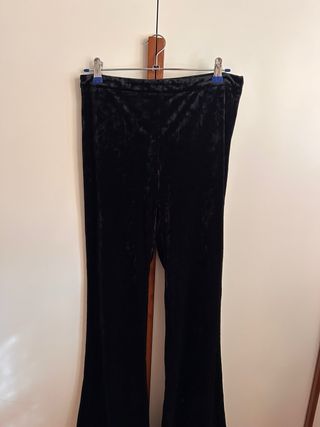 Pantalones de corte flare con cremallera en lateral, son un poco elásticos,de largo miden 86 cm.