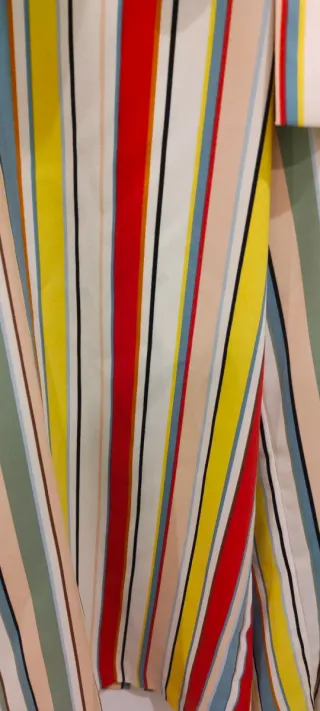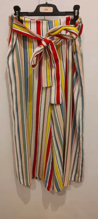 Pantalón de Zara con un diseño de rayas verticales en varios colores. Presenta un cinturón anudado en la cintura. - Diseño de rayas multicolor. - Cinturón a juego.