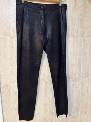 Pantalón realizado en tejido efecto ante. Un básico con un toque especial. - - Tiro medio y cintura con trabillas. Bolsillos en delantero y espalda - Cierre frontal con cremallera, botón y ganchos metálicos