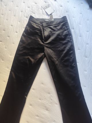 Pantalón elegante de Zara, confeccionado en raso. - Corte recto. - Bolsillos delanteros. - Cierre con cremallera y botón.