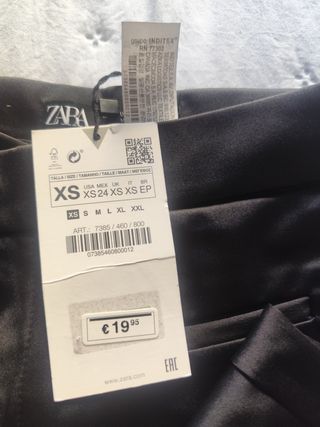 Pantalón negro de Zara, con etiqueta. - Cintura alta con cinturón. - Pierna ancha. - Bolsillos laterales.