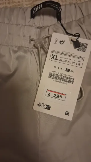 Pantalón de la marca Zara en color gris. Diseño moderno y cómodo. - Cintura elástica con cordón. - Tejido ligero y resistente. - Bolsillos laterales.