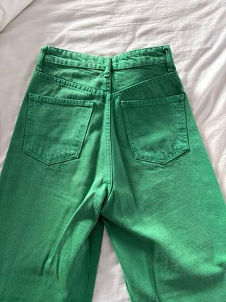 Pantalón de la marca Zara en color verde. - Diseño de corte recto. - Cintura alta. - Bolsillos delanteros y traseros.