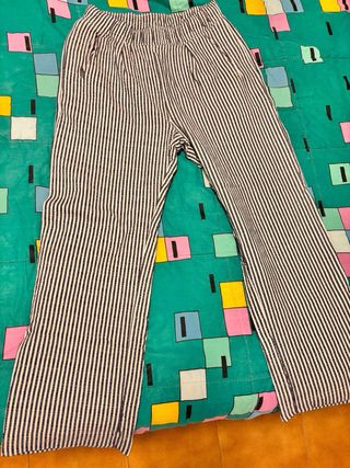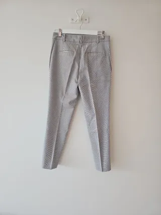 Pantalón veraniego de Zara con un diseño de rayas verticales. - Tejido ligero ideal para el buen tiempo. - Cintura elástica para mayor comodidad. - Bolsillo trasero con cremallera.