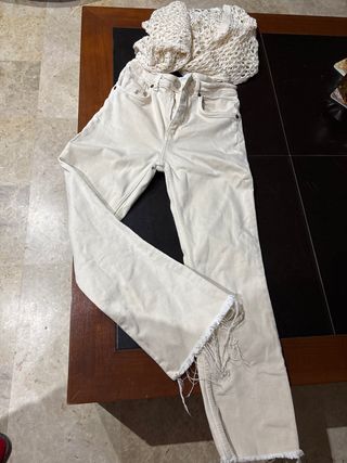 Pantalón blanco Pull&Bear T.36 y camiseta Zara
