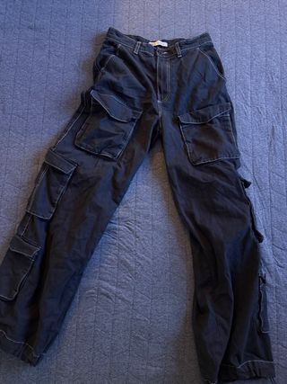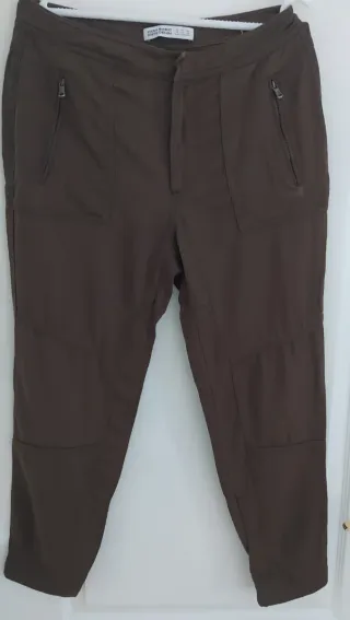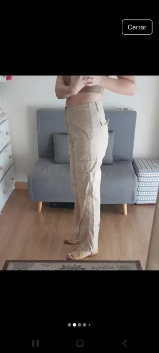 Pantalón estilo cargo de Zara. - Diseño con múltiples bolsillos. - Corte recto y cómodo. - cierre de botón y cremallera, - bajos rozaso