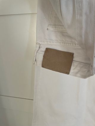 Pantalón vaquero de color blanco de la marca Zara. - Corte recto. - Cierre de botón y cremallera. - Bolsillos delanteros y traseros.
