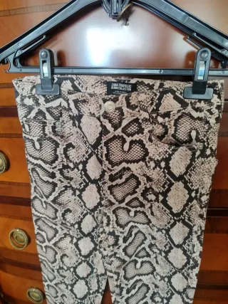 Pantalón de polipiel con un llamativo estampado de serpiente. - Diseño de Zara. - Corte recto - Combinación de colores negro y gris.