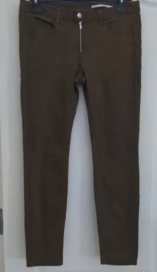 Pantalón chino de Zara en color caqui. Un básico versátil para cualquier ocasión. - Corte moderno. - Tejido de algodón. - Bolsillos funcionales.