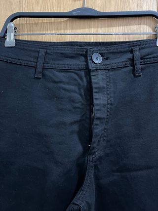 Pantalón estilo cargo de Zara. Diseño moderno y funcional. - Bolsillos laterales. - Cintura con trabillas. - Cierre de botón y cremallera.lis bajos esta n rozados