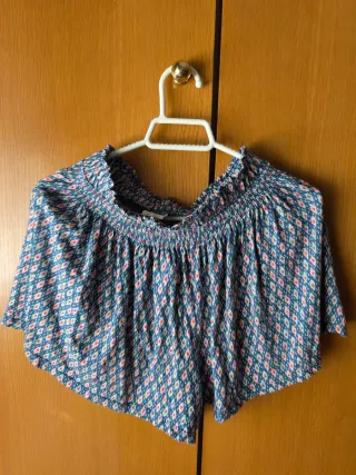 Pantalón corto estampado de Zara para niña. - Estampado floral pequeño. - Cintura elástica fruncida. - Corte holgado.