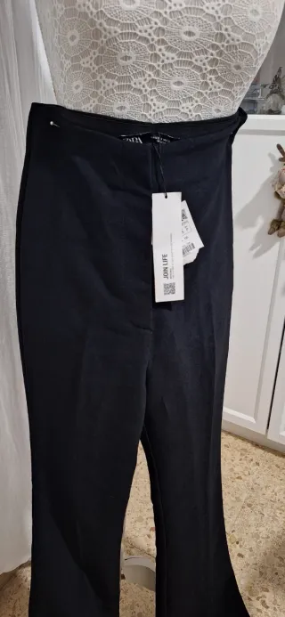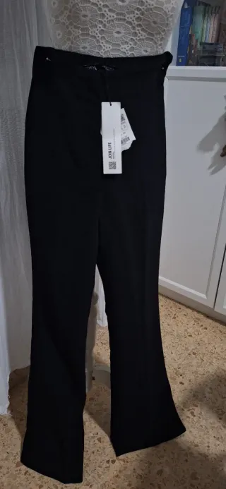 Pantalones de vestir negros de Zara. Diseño clásico y elegante. - Corte recto. - Cintura con trabillas. - Cierre de cremallera y botón. - Dobladillo en los bajos.