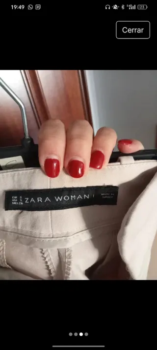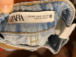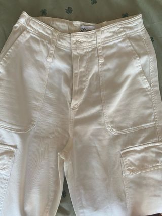Talla 34, marca Zara . Tiene una goma en la cintura para ajustar. Sienta muy bien, es muy cómodo, es de estilo cargo. Venta en persona en Vigo o Santiago de Compostela. Pack descuento con otros artículos de mi perfil.