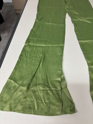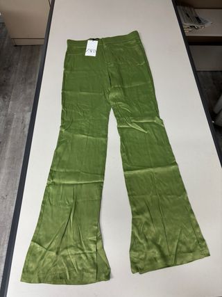 Pantalón de corte acampanado con un acabado satinado. - Nuevo a estrenar. - Talla L ( medias en las imágenes ) - Descuento por la compra de varias prendas - Envío a través de Wallapay o Vinted - Tejido fluido y brillante. - Diseño moderno y elegante.