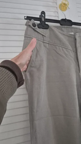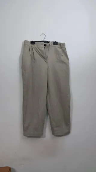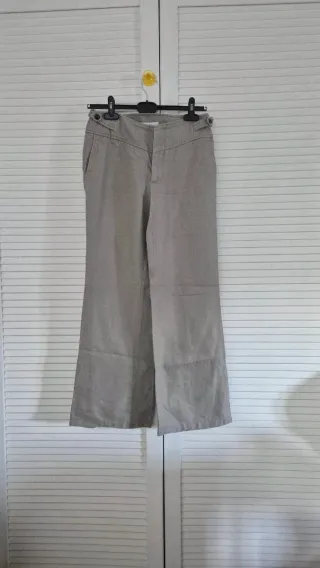 Pantalón de loneta, corte ancho para mujer. - Diseño de pierna ancha. - Detalle de botones en la cintura. - Tejido de loneta. - Talla 40 - Se pueden probar sin compromiso.
