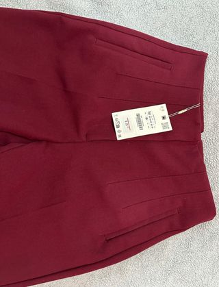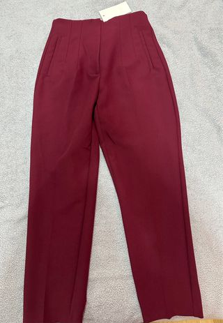 Pantalón de vestir de la marca Zara, en un llamativo color rojo vino y con etiqueta. - Diseño de talle alto. - Bolsillos laterales. - Corte recto.