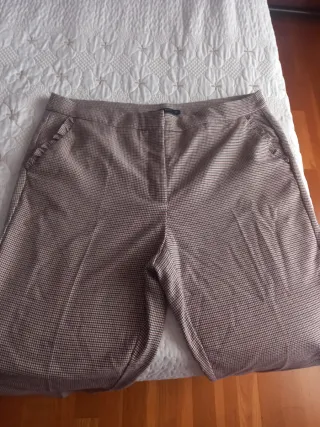 Pantalones de vestir de Zara con un elegante estampado de cuadros. - Diseño de cuadros en tonos beige y marrón. - Cierre de cremallera y botón. - Bolsillos laterales.