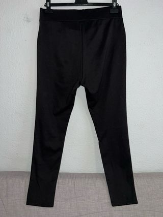 Color: Verde oscuro bosque Estado: Muy bueno Diseño: Pantalón tipo legging de corte recto con costura central marcada que estiliza la silueta. Cintura: Cintura elástica ancha para mayor comodidad y ajuste. Sin bolsillos: El diseño es liso y minimalista, sin bolsillos frontales ni traseros. Tejido: Material con textura ligeramente elástica, ideal para un look casual o de oficina.