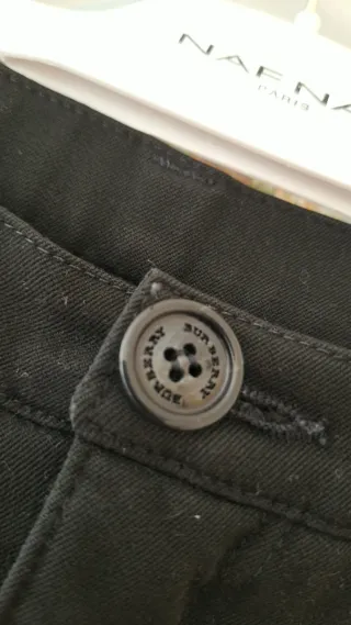 Pantalones vaqueros de la marca Brownie en color negro. Tienen un corte acampanado. Tiene distintos botones porque se le cayeron dos pero dos son de brownie y los otros dos se los puse yo pero se puede poner perfectamente.