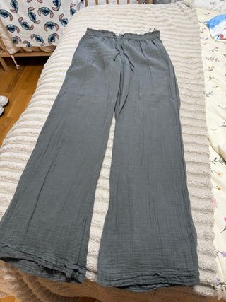 corte acampanado, con un diseño moderno y elegante. Es de una tienda de ropa, pero tuve que poner otra marca porque no me aparece - Cintura alta. - Detalle de cordones en la cintura. - Piernas amplias.