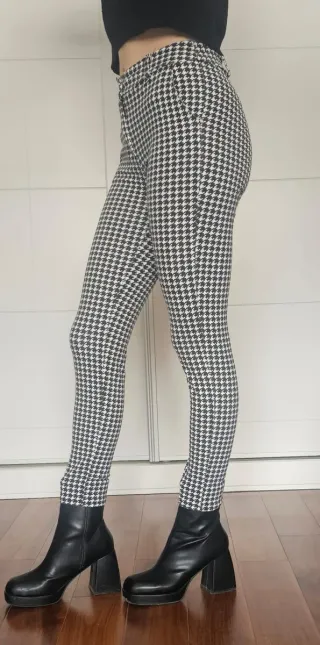 Pantalón elástico con estampado de cuadros. - Diseño de cuadros blanco y negro. - Tejido elástico para mayor comodidad. - Talla XS / 34 / 6.