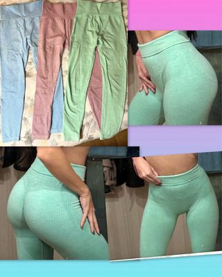 Conjunto de tres mallas deportivas elásticas. Azul, verde, rosa. - Diseño texturizado. - Cintura alta. - Tejido transpirable. muy elásticas, casi nuevas