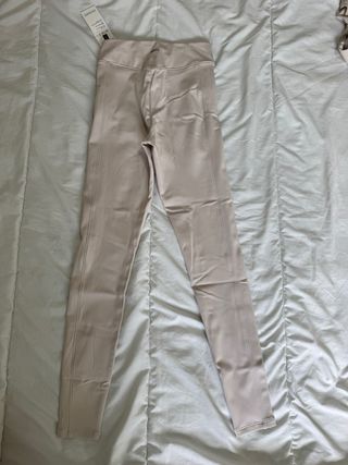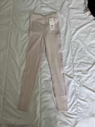 Leggings de la marca Oysho en color beige. - Talla S (36/8). - Diseño con cintura alta. - Costuras marcadas en las piernas.
