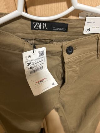Pantalón Zara Skinny Talla 38 Marrón