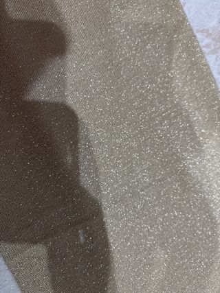 Pantalón de campana con acabado de purpurina con los laterales abiertos. - Diseño de campana. - Tejido con brillo. - Pierna abierta hasta un poco más arriba de la rodilla. - Es talla única que equivale a una M pero me lo he puesto una sola vez, asi que puede valer para una S también y al ser elástico el material da tambien para una L perfectamente aunque ya se estirarían un poco de más.. -Como nuevos, con un solo uso