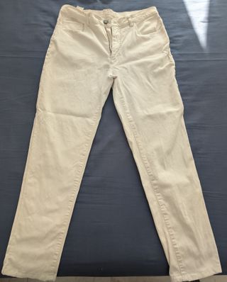 Pantalón de color blanco roto talla 38. Marca Lloyd's - Diseño de cinco bolsillos. - Cierre de cremallera y botón. 94 cm largo 46 cm cadera 38 cm cintura