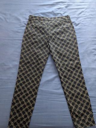 Pantalón de vestir Zara Woman con un estampado geométrico. Talla 38 - Diseño con eslabones en dorado sobre fondo negro. - Corte recto y moderno. - Diseño de cuatro bolsillos. - Cierre de cremallera y botón. 94 cm largo 47 cm cadera 39 cm cintura