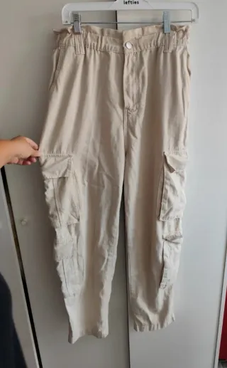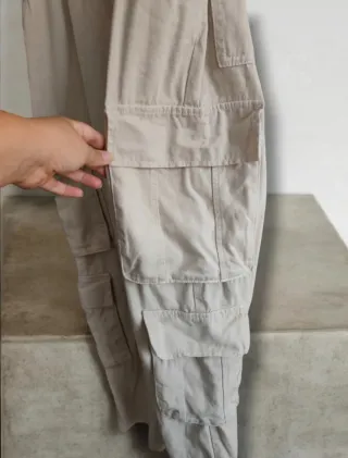 Pantalones cargo de Stradivarius en color beige. Diseño moderno y funcional. - Bolsillos cargo en los laterales. - Cintura con trabillas para cinturón. - Cierre de botón y cremallera. - 100% algodon - Muy buen estado