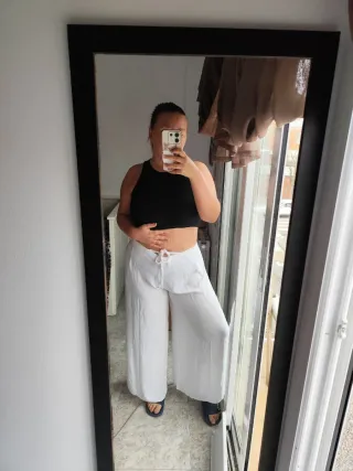 Pantalón ancho de estilo informal. Es cómodo y versátil. - Cintura elástica con cordón. - Piernas anchas y fluidas. Totalmente nuevo. Lo compré para mi hija y no le sirve
