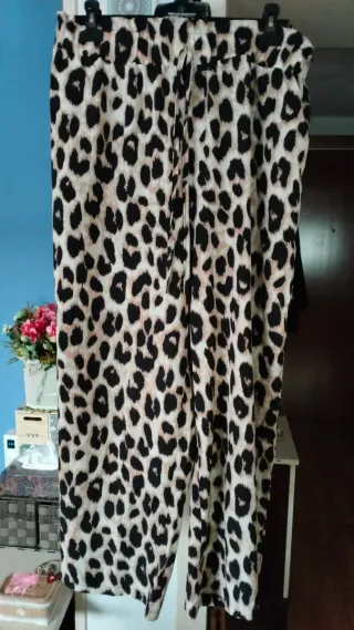 Pantalón largo con estampado de leopardo. - Cintura elástica para mayor comodidad.5cm Cintura:45cm sin estirar Pantalón recto y amplio de piernas. 37cm ancho perneras