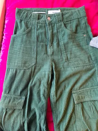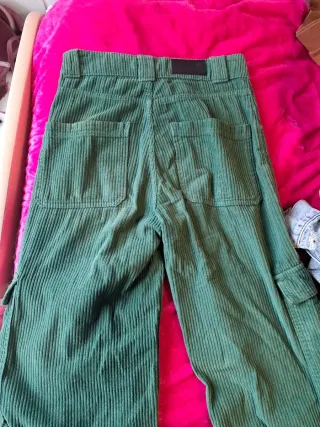 Pantalones cargo de pana en color verde. - Tejido de pana acanalada ( calentito). - Bolsillos cargo en los laterales. - Cintura con trabillas para cinturón.